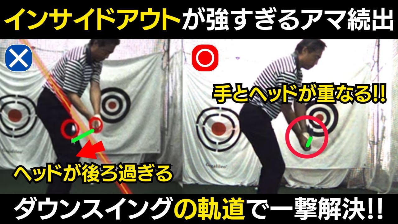 このゴルフレッスン動画では『【一撃ビフォーアフター|後半】アマでも意外と多い、インサイドアウト軌道が強すぎる問題!』を学ぶ事ができます!