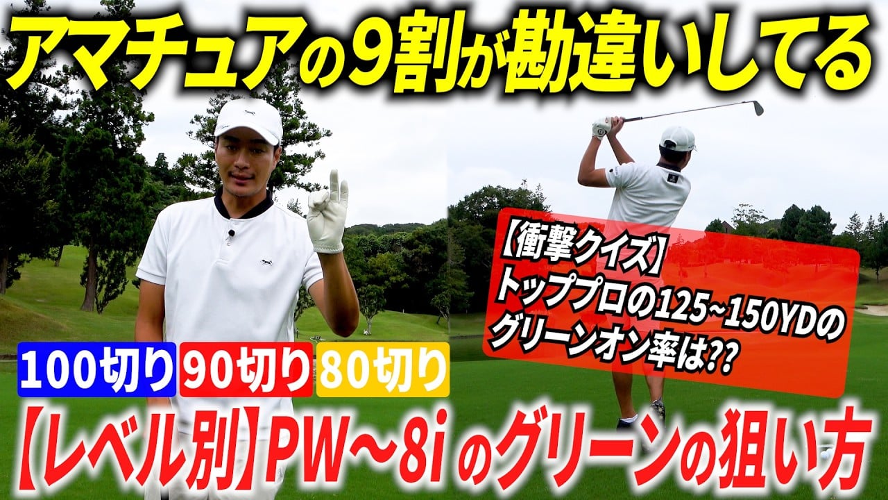 今回のゴルフレッスン動画は『【損してる人多すぎ】PW~8iでグリーンを狙う時の考え方・レベル別マネジメント解説』となっています!