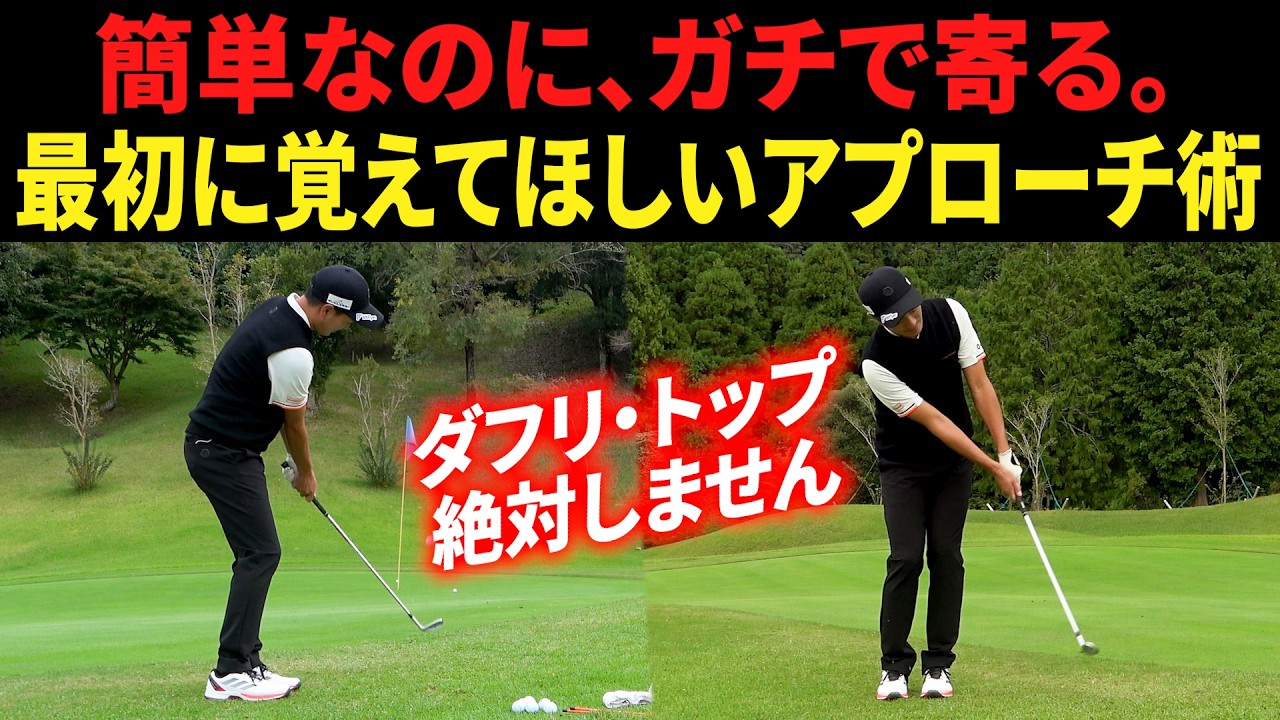 今回のゴルフレッスン動画は『ダフリ・トップとおさらば。「”簡単なのにガチで寄る”アプローチの打ち方・構え方」』となっています!