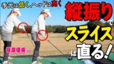 といったミスの根本を整理し、地面を擦り、右足90度まで回り切る素振りを解説。