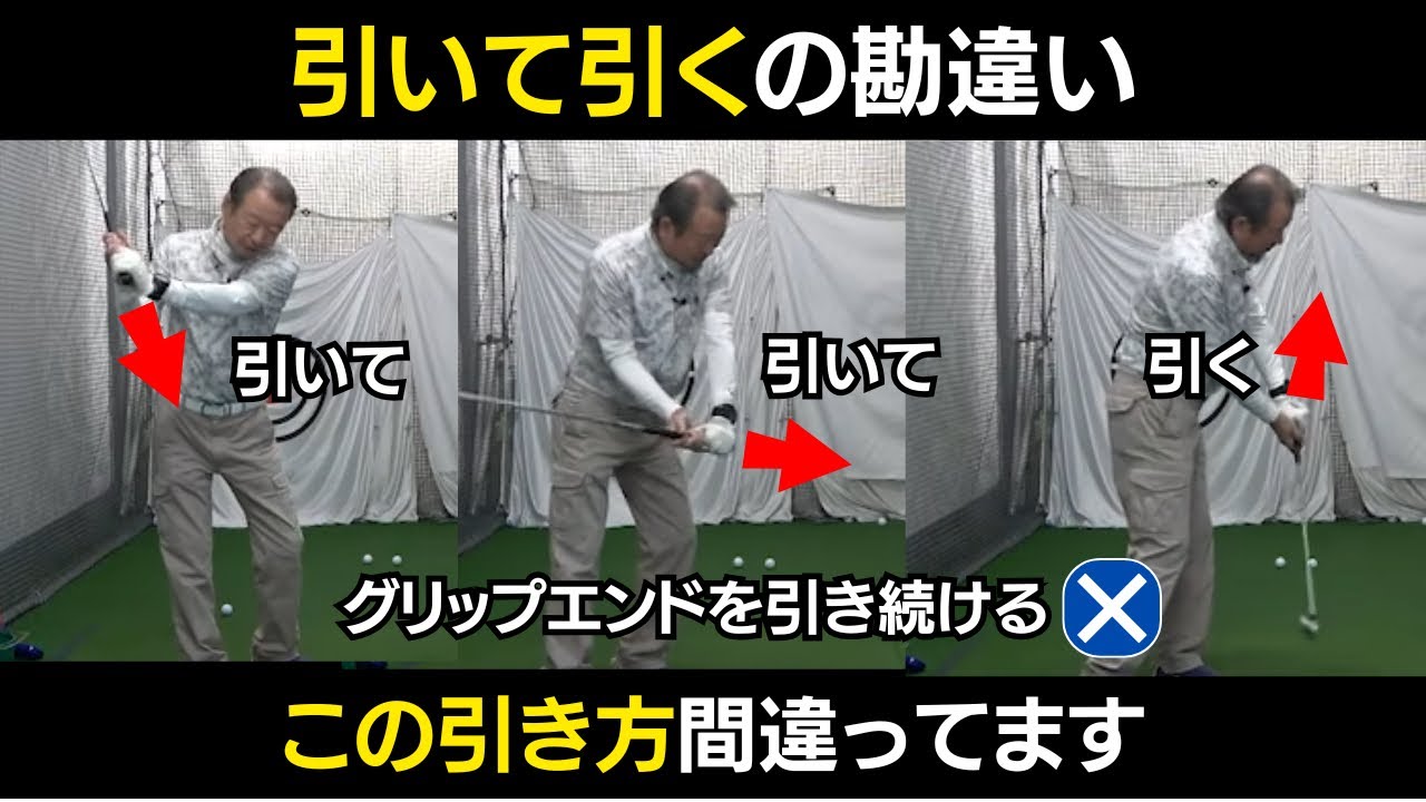 このゴルフレッスン動画では『【一撃ビフォーアフター後半】「引いて引く」の勘違いで損してない?ヘッドが勝手に走る綱引きの法則』を学ぶ事ができます!
